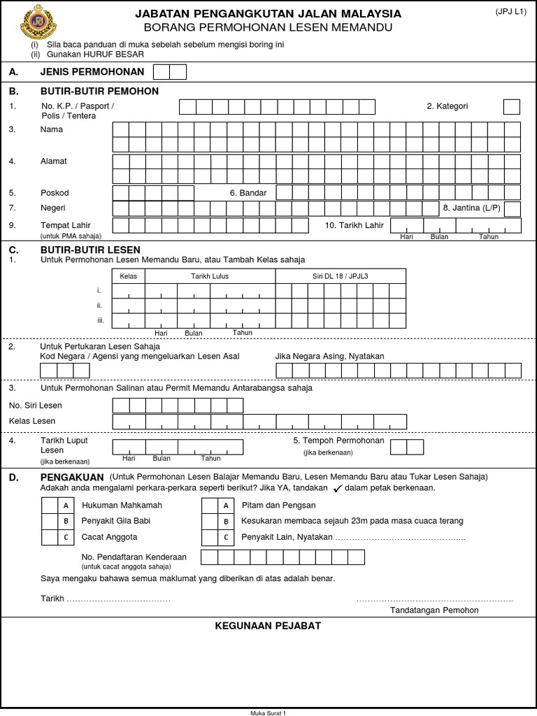 Jpjl1 Permohonan Lesen Ldl Pdl Cdl Pdf